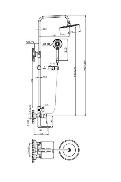 Размер верхнего душа, см:22.5