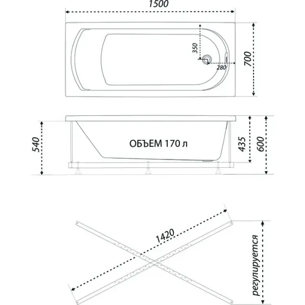 Акриловая ванна 1ACReal Дюна Щ0000046111 обрезанная 150x70 см белый купить