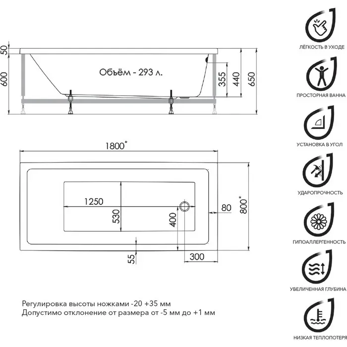 Основные достоинства акриловой ванны: