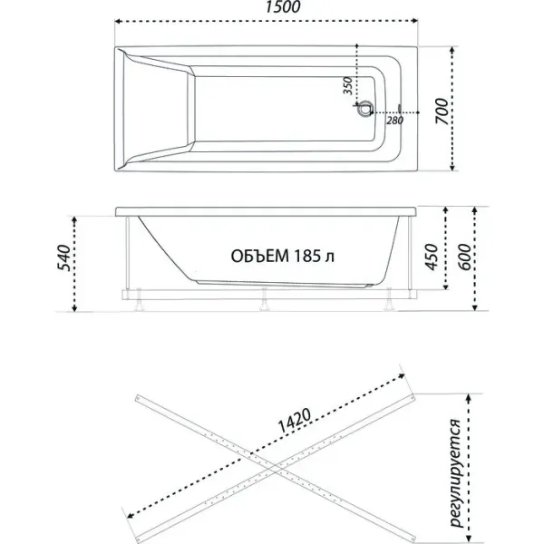 Акриловая ванна 1ACReal Тори Щ0000044549 150x70 см на Х-каркасе белый купить