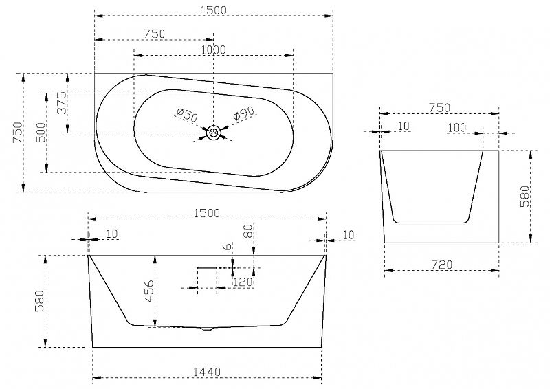 Акриловая ванна ABBER 150x75см AB9494-1.5