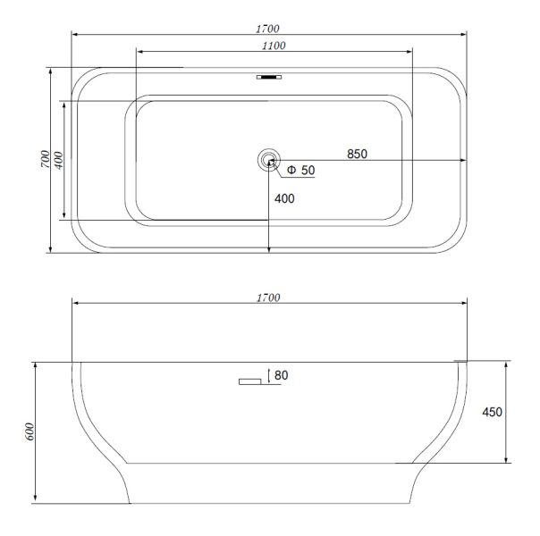 Акриловая ванна ABBER AB9220 170x70x60