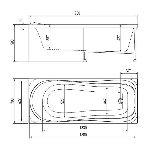 Глубина ванны: 42,7 см.