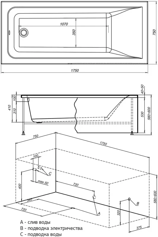 Акриловая ванна Aquanet Bright 175x75 создана с учетом растущего спроса на ванны простой прямоугольной формы в популярных размерах. Это модель с прямыми бортами и пологой спинкой, где соблюден идеальный угол для комфортного нахождения в ванне. Спинка плавно перетекает в бортик, поэтому релакс гарантирован даже без использования подголовника. Все линии ванны подчинены строгим законам эргономики. В современных условиях ширина ванны 75 см при длине 175 см - это наиболее востребованные габариты, так как прекрасно вписываются в стандартную планировку современных ванных комнат. Чаша в этой ванне устроена таким образом, что для обозначенных размеров в ней достигнут максимально возможный внутренний объем, а именно 186 литров, и это при комфортной глубине в 410 мм от слива ванны до борта. Ванна рассчитана на нагрузку свыше 300 кг, так что даже крепкий мужчина сможет без опаски находиться в ней. Двойной слой армирования обеспечивает надежность чаши, а закладные из МДФ-плит в местах наибольшей нагрузки усиливают эффект.