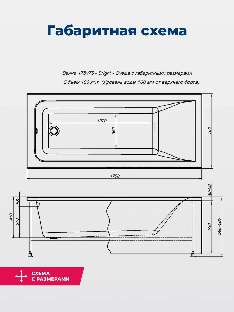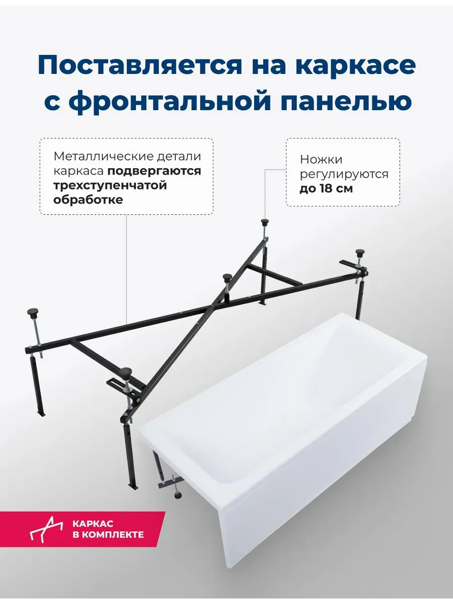 Акриловая ванна Aquanet Bright 347141 175x75 см с каркасом и фронтальной панелью купить