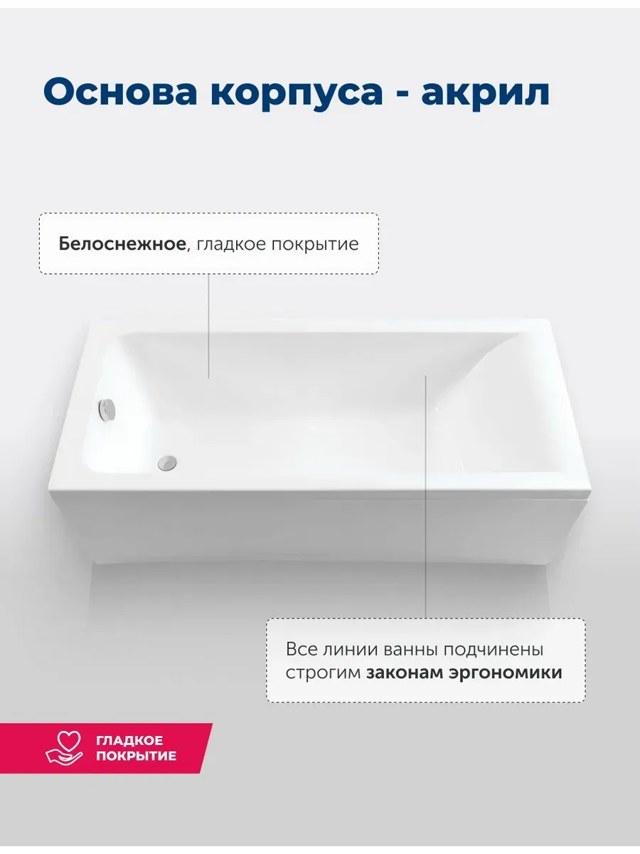 Акриловая ванна Aquanet создана с учетом растущего спроса на ванны простой прямоугольной формы в популярных размерах. Это модель с прямыми бортами и пологой спинкой, где соблюден идеальный угол для комфортного нахождения в ванне. Спинка плавно перетекает в бортик, поэтому релакс гарантирован даже без использования подголовника. Все линии ванны подчинены строгим законам эргономики. Чаша в этой ванне устроена таким образом, что для обозначенных размеров в ней достигнут максимально возможный внутренний объем, и это при комфортной глубине от слива ванны до борта. Ванна рассчитана на нагрузку свыше 300 кг, так что даже крепкий мужчина сможет без опаски находиться в ней. Двойной слой армирования обеспечивает надежность чаши, а закладные из МДФ-плит в местах наибольшей нагрузки усиливают эффект.
