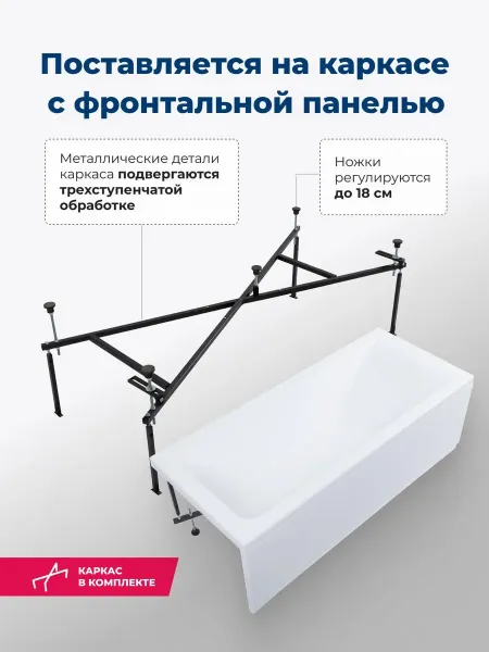 Акриловая ванна Aquanet Bright 347142 180x70 см с каркасом и фронтальной панелью