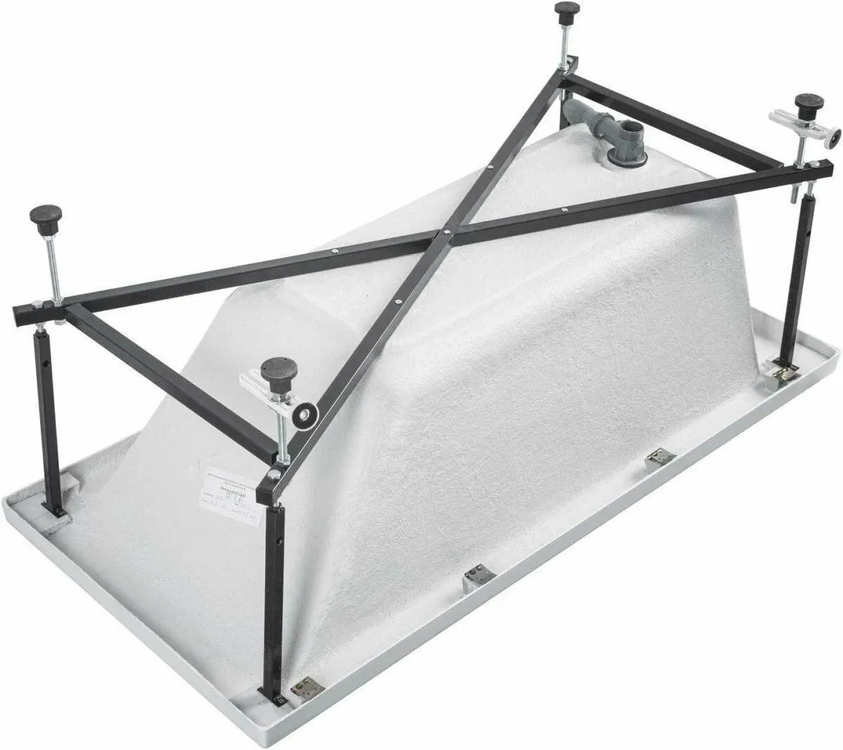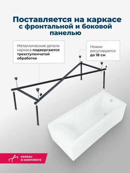 Ванна уже установлена на жесткий сварной каркас из металлического профиля. Металлические детали каркаса подвергаются трехступенчатой обработке, когда сначала профильная труба проходит абразивную зачистку на специальном станке, после чего готовые детали обрабатывают каустической содой, и, просушив, покрывают с помощью электростатического распылителя молотковой краской по металлу. Это гарантирует равномерность окрашивания и стойкость покрытия.