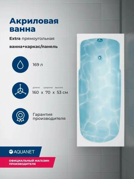 Акриловая ванна Aquanet Extra 347147 160x70 см с каркасом и фронтальной панелью купить