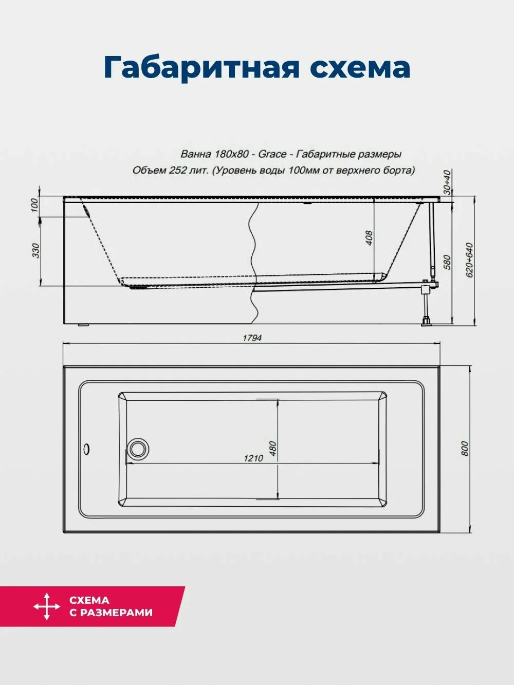 Акриловая ванна Aquanet Grace 347879 180x80 см с каркасом с фронтальной и боковой панелями