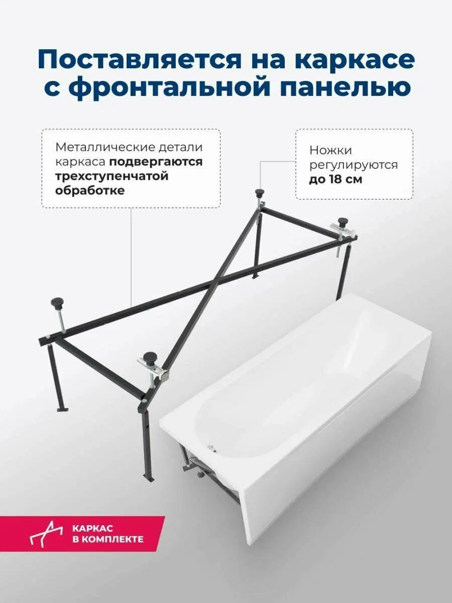 Акриловая ванна Aquanet Lotos 347157 165x70 см с каркасом и фронтальной панелью купить