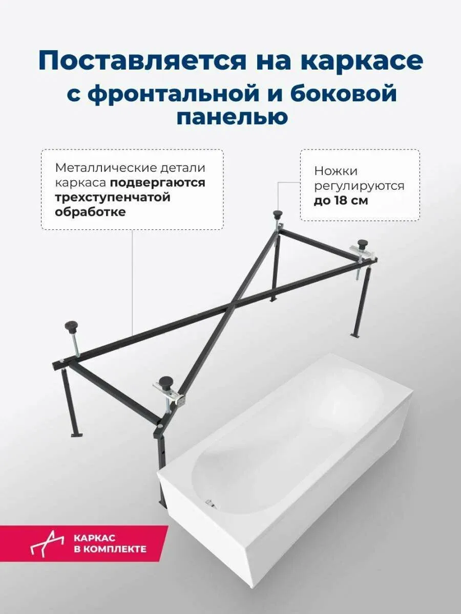 Акриловая ванна Aquanet Lotos 347881 150x75 см с каркасом с боковой и фронтальной панелями купить
