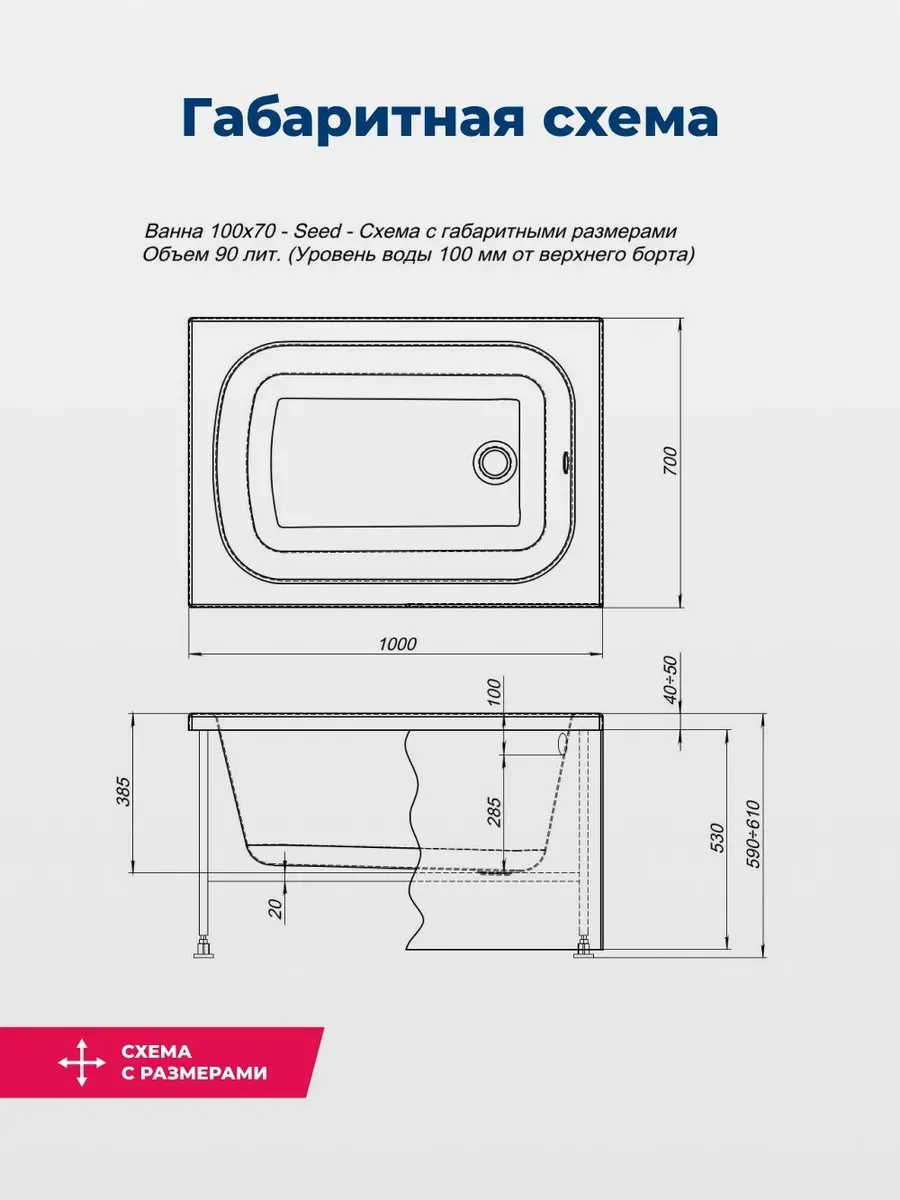 Акриловая ванна Aquanet Seed 347169 100x70 см с каркасом и фронтальной панелью купить