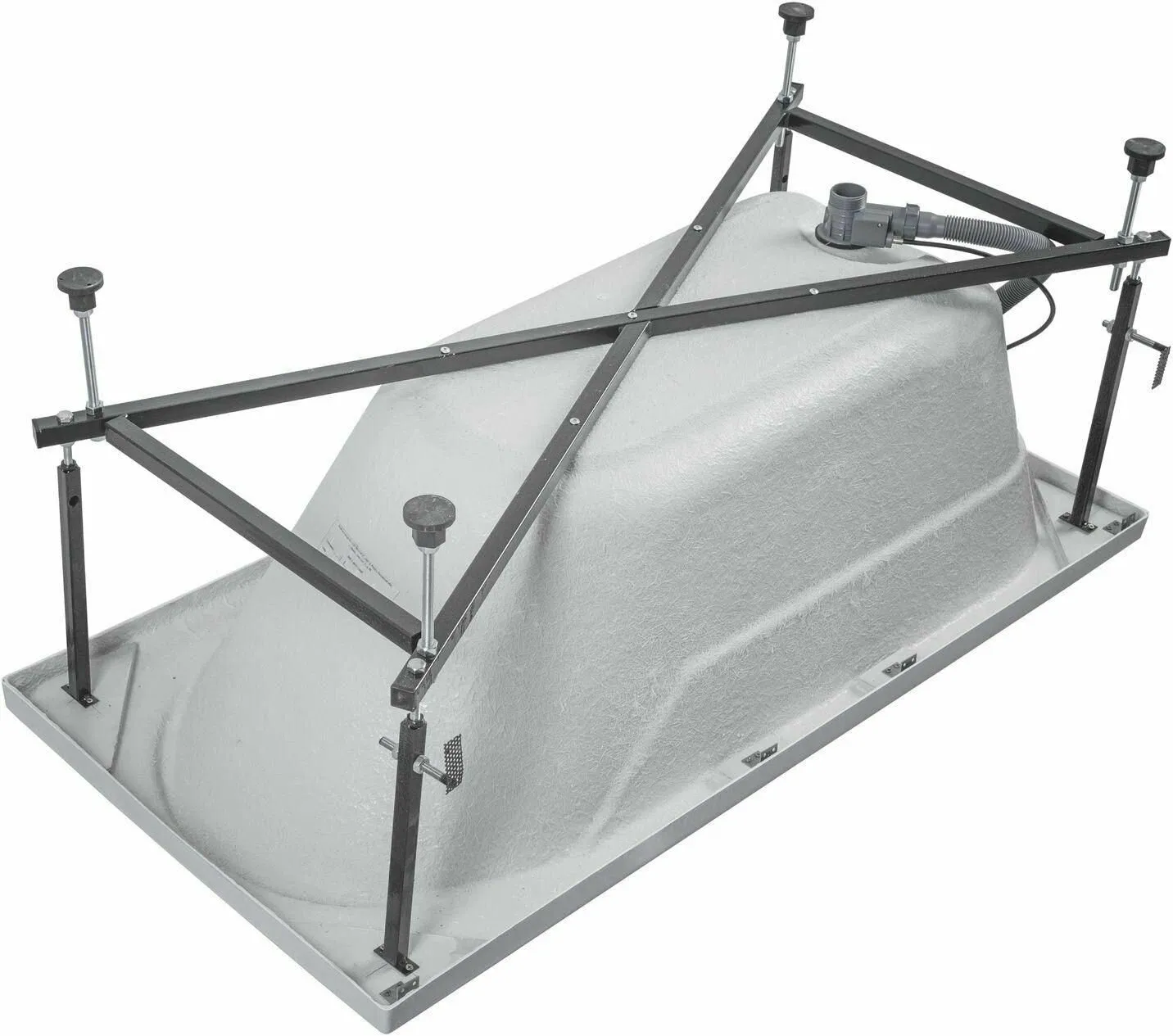 Ванна уже установлена на жесткий сварной каркас из металлического профиля. Металлические детали каркаса подвергаются трехступенчатой обработке, когда сначала профильная труба проходит абразивную зачистку на специальном станке, после чего готовые детали обрабатывают каустической содой, и, просушив, покрывают с помощью электростатического распылителя молотковой краской по металлу. Это гарантирует равномерность окрашивания и стойкость покрытия.