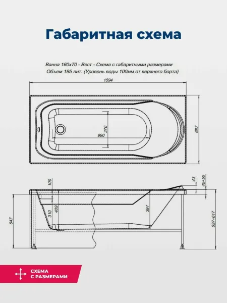 Акриловая ванна Aquanet West 160x70 - прекрасный выбор модели эконом-класса сраднего размера. На... Подробнее
