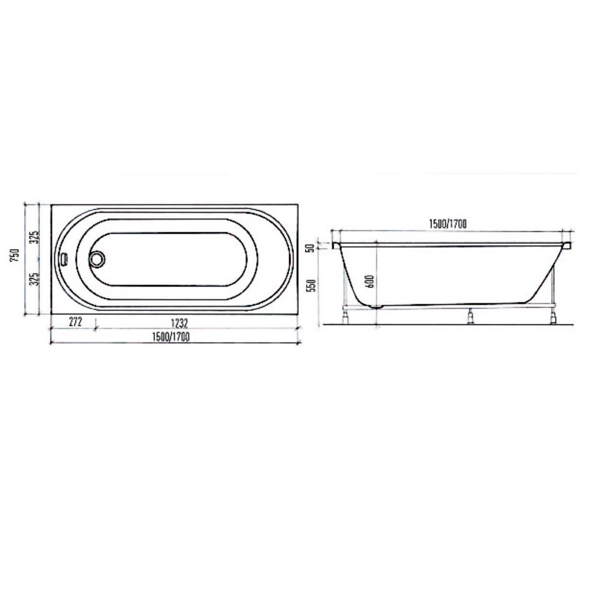 Акриловая ванна Aquanika Round A1015075024 150x75 см белый купить