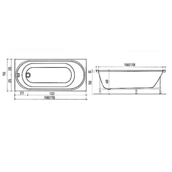 Акриловая ванна Aquanika Round A1015075024 150x75 см белый