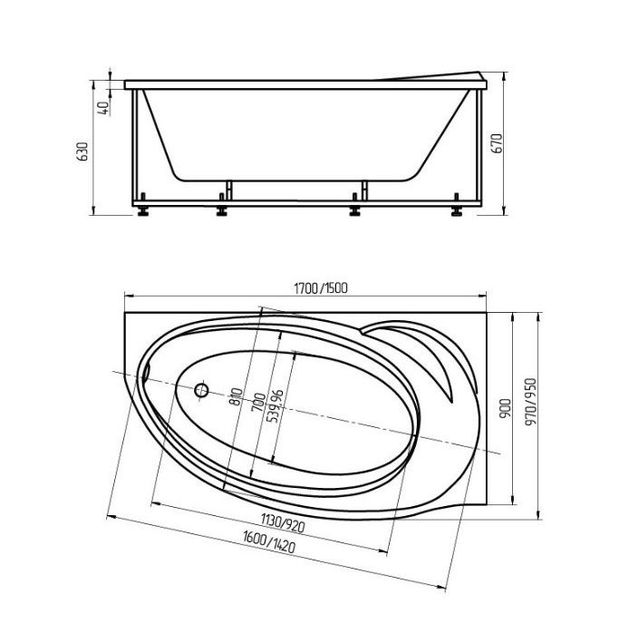 Габариты (Д Ш), см: 170х97Высота с опорой, см: 67Объем, л: 225 Форма: асимметричнаяМонтаж: пристеннаяРасположение перелива: стандартноеДиаметр слива ванны, см: 5,2Материал: 100% литьевой акрилТолщина акрилового листа, мм: 4Гарантия: 20 летСтрана: Россия Вид опоры: каркас сборно-разборный сварной, есть в комплектеЭкран: фронтальный, приобретается отдельноСлив-перелив: есть, в комплектеАнтискользящее покрытие: не предусмотреноПодголовник: приобретается отдельноРучки: приобретаются отдельно Система гидромассажа: установка по желаниюАэромассаж: установка по желаниюХромотерапия: установка по желаниюРучки, поручни для ванны: установка по желаниюВстроенные смесители: установка по желаниюИзменение конструкции каркаса: установка по желаниюОзонирование: нет, установка не предусмотренаЗащита от сухого пуска: установка по желаниюУправление: любое по желанию