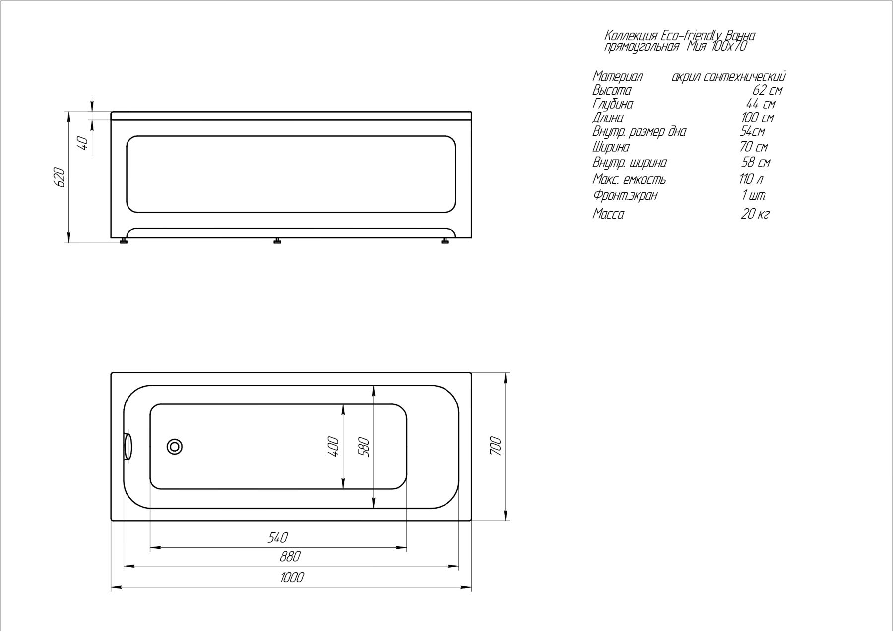 Описание:Габариты (Д Ш), см: 100х70Высота с опорой, см: 62Объем, л: 110Форма: прямоугольнаяМонтаж: пристеннаяРасположение перелива: стандартноеДиаметр слива ванны, см: 5,2Материал: 100% литьевой акрилЦвет: белыйГарантия: 20 летСтрана: РоссияВид опоры: каркас сборно-разборный металлический (шпильки) или опорная конструкция (ножки), приобретается отдельноЭкран: фронтальный и боковой, приобретаются отдельноСлив-перелив: нет, приобретается отдельноНескользкая поверхность