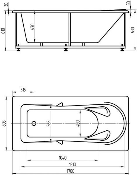 • Ванна устанавливается на каркас, который поставляется в комплекте