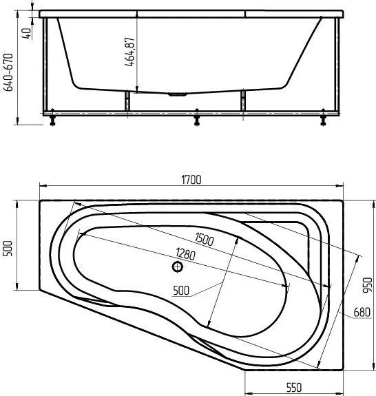 - Ванна устанавливается на каркас, который поставляется в комплекте