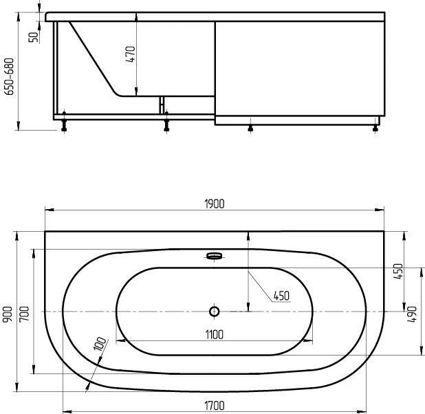 Акриловая ванна Aquatek Морфей MOR190-0000014 190х90 см с фронтальным и боковыми экранами вклеенный цельносварной металлический каркас