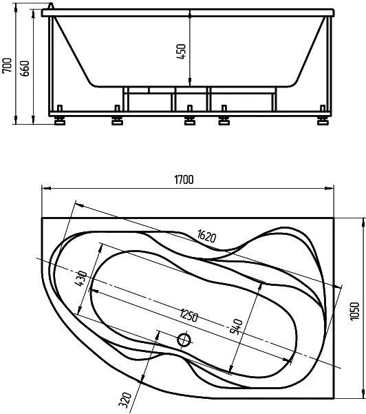 Акриловая ванна Aquatek Вега VEG170-0000083 170х105 см правая с фронтальным экраном сборно-разборный сварной каркас