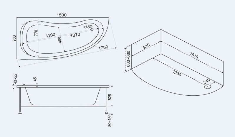 Состав поставки: Ванна, Каркас