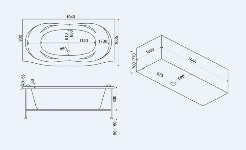Акриловая ванна Bas Фиеста 195x90 см без гидромассажа