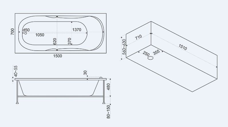 Состав поставки: Ванна, Каркас