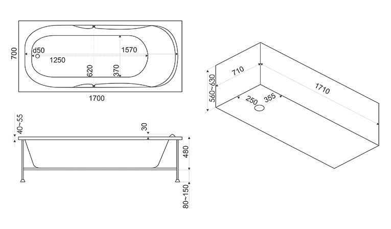 Ширина:700 ммВысота:630 ммГлубина:430 ммДлина:1700 ммЦвет:БелыйМатериал:Литьевой акрилОбъем:205 л-