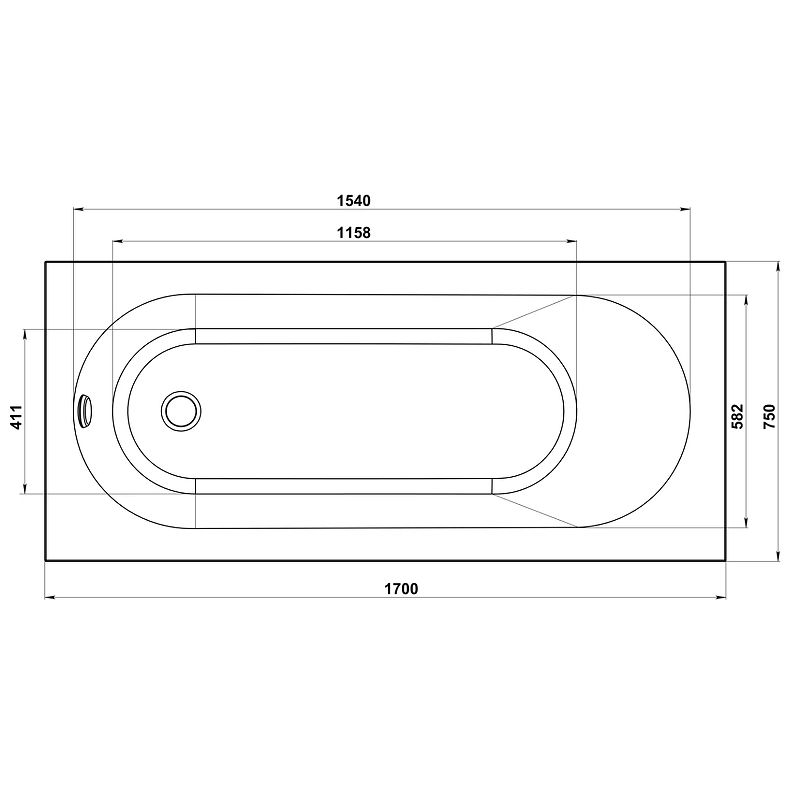 Акриловая ванна Bas Орион-PRO 170x75 В 00137 без гидромассажа