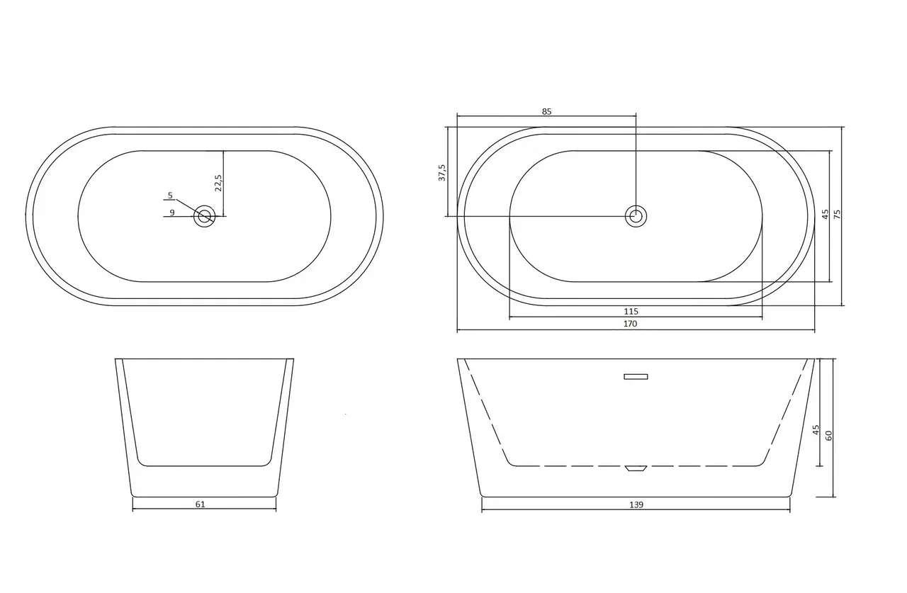 Акриловая ванна Cerutti SPA RESIA170II СТ 10519 отдельностоящая 170x75 см белыйАкриловая отдельностоящая ванна RESIA170II бренда Ceruttispa в современном стиле Modern c антискользящим покрытием выполнена в классическом белом цвете и имеет практичную форму овала .Вместительная ванна от Ceruttispa станет идеальным дополнением ванной комнаты любого стиля.Ванна RESIA170II выполнена из качественного акрила, который хорошо сохраняет тепло и тактильно приятен. Устойчивость и практичность ванны достигается армированием дна стекловолокном и использованием прочного металлического каркаса. Помимо этого, в местах крепежа каркаса установлены дополнительные усиленные закладные для придания жесткости конструкции, что гарантирует максимально долгий срок эксплуатации ванны.Акрил, из которого выполнена ванна RESIA170II, устойчив к образованию грибка и плесени. В такую поверхность не впитывается грязь. Поэтому акриловая поверхность ванны очень легко чистится в домашних условиях, не отнимает много времени и сил, а также не требует частой чистки. Антискользящая поверхность ванны исключает случайные падения. Повышенное звукопоглощение акрила позволит избежать шума от набираемой в ванну воды.Ванна RESIA170II бренда Ceruttispa - Ваш личный СПА-центр у вас дома. Наслаждайтесь каждым мгновением!