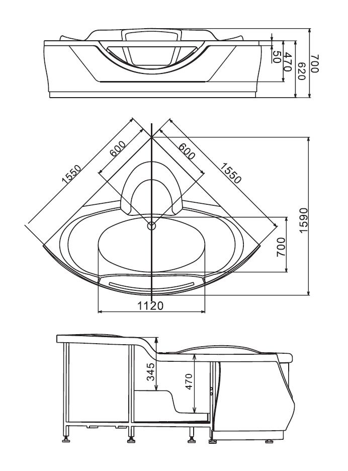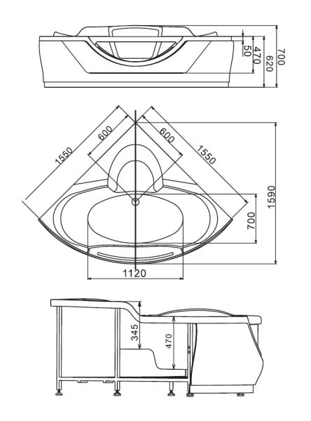 Акриловая ванна GEMY G9025 II O 155x155x70