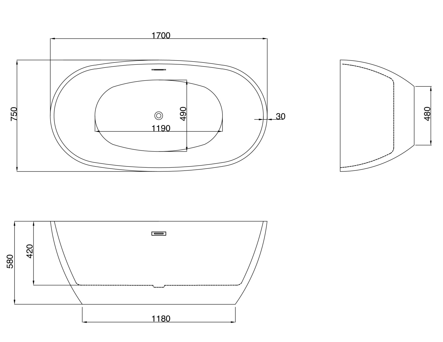 Акриловая ванна Grossman Fly GR-1104MB 170x75см чёрный матовый/белый купить