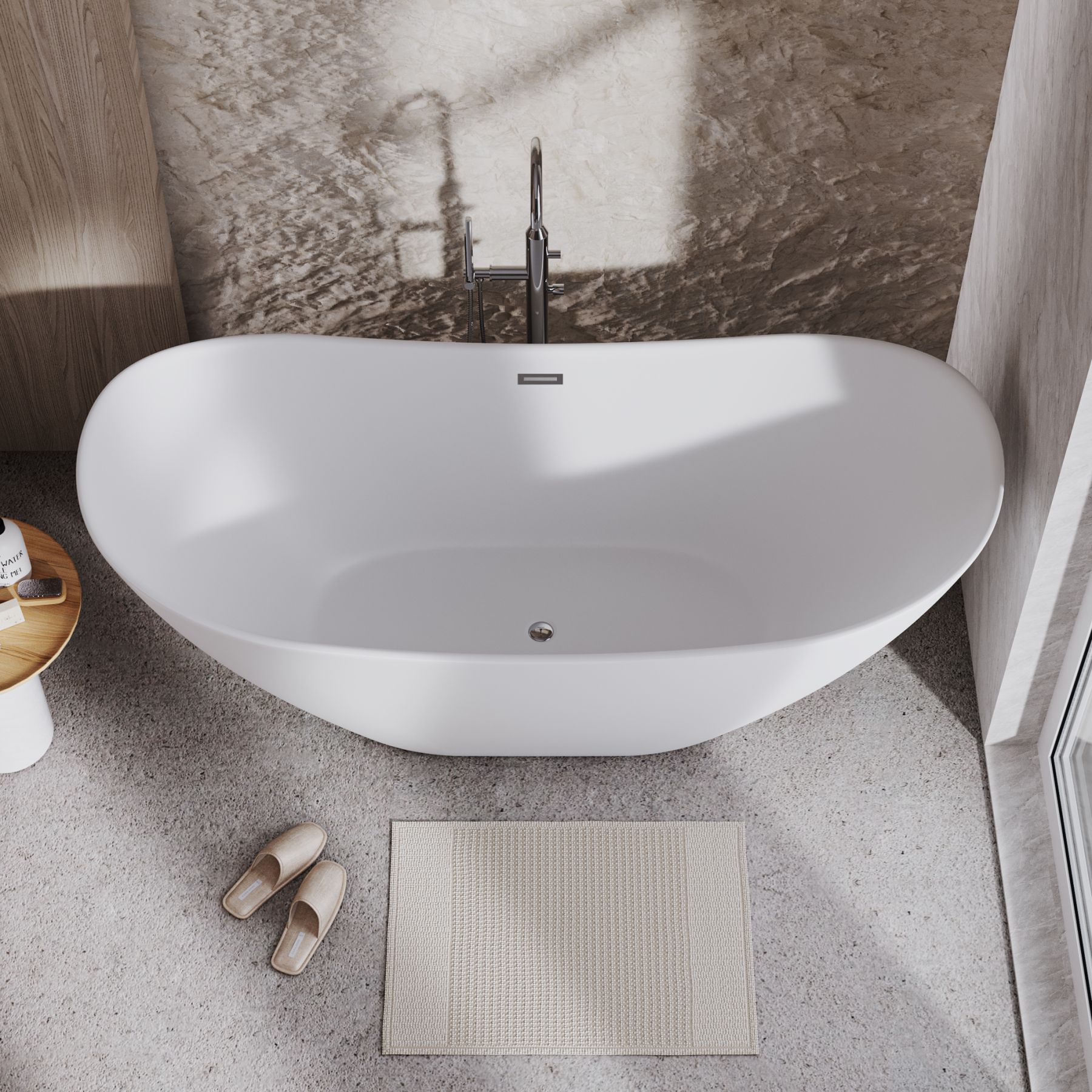 Ванна изготовлена из акрилового листа толщиной 5 мм, что обеспечивает прочность и долговечность изделия. Акриловый материал также приятен на ощупь и сохраняет тепло воды на длительное время, создавая комфорт при принятии ванны. Ванна выполнена в белом матовом цвете. Дополнительно, данная ванна обладает антибактериальным покрытием, которое предотвращает размножение бактерий и обеспечивает гигиеничность использования. Усиленный каркас ванны обеспечивает стабильность и надежность конструкции, что позволяет использовать ванну без опасений и сомнений. Четырехслойная армировка ванной усиливает ее прочность и структурную целостность, что делает ее стойкой к воздействию внешних факторов и повышает ее долговечность. Эта отдельностоящая ванна сочетает в себе функциональность, надежность и эстетическое привлекательность, создавая идеальное пространство для релаксации и ухода за собой в вашей ванной комнате.