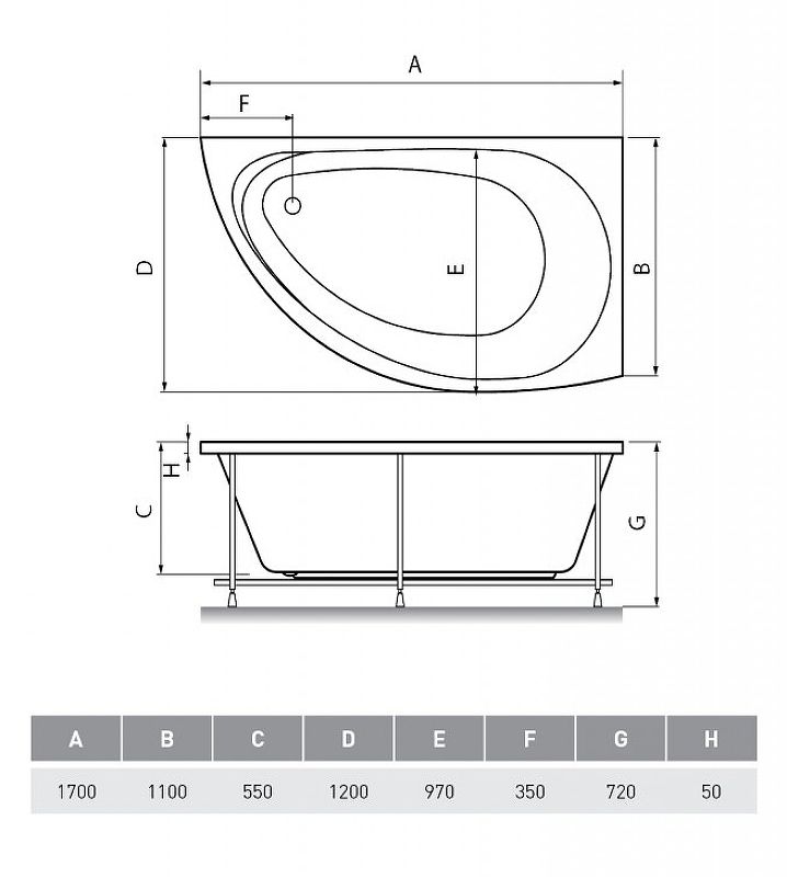 Акриловая ванна Relisan Eco Plus Ибица 170х120 L Гл000023027 без гидромассажа