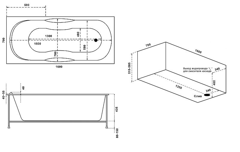 Акриловая ванна Relisan Eco Plus Мега 160x70 Гл000015091 без гидромассажа