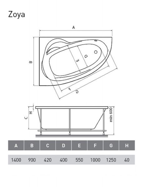 Акриловая ванна Relisan Zoya 140x90 L Гл000001247 без гидромассажа купить
