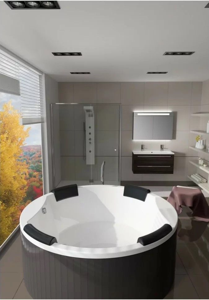 Ванна имеет полностью круглую форму и обеспечивает комфортные водные процедуры для четырех человек.