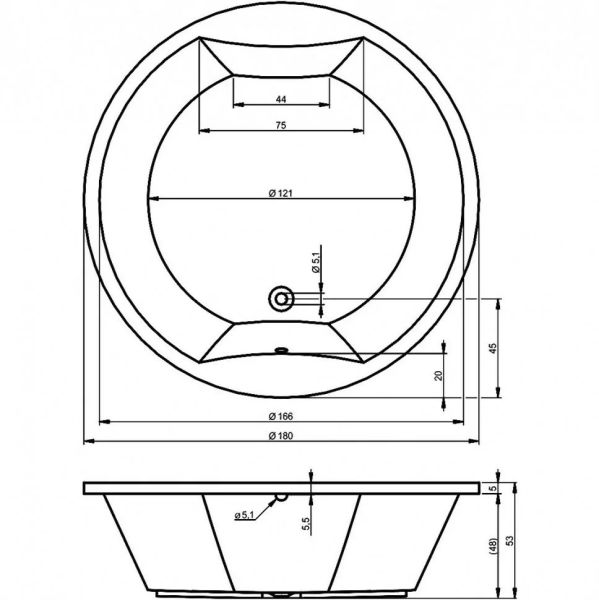 Круглая акриловая ванна RIHO Colorado D180 изготовлена из высококачественного листа акрила глянцевого белого цвета.