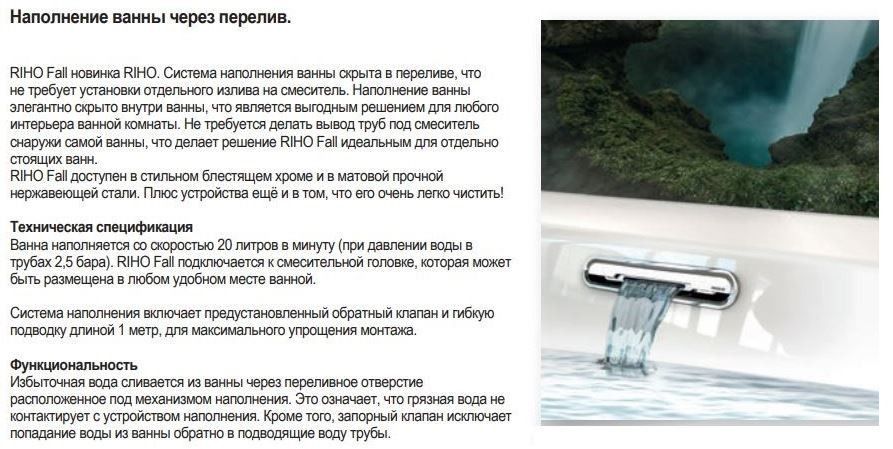 Аэромассажная ванна с функцией Riho Fall - наполнение ванны через систему слива-перелива, и Riho Sparkle - система релаксации, включающая в себя: