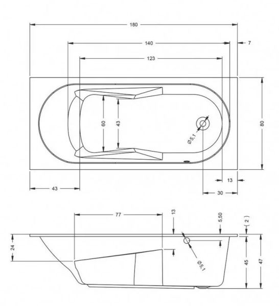Ванна имеет небольшие элегантные подлокотники и спинку комбинированной формы: в ванне удобно и сидеть, и лежать.