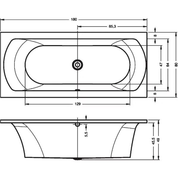 Акриловая ванна RIHO Lima 180x80 изготовлена из высококачественного листа акрила белого цвета, полностью армирована.