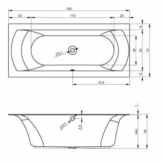 Слив-перелив расположен по центру ванны.