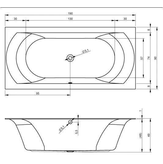 Акриловая ванна RIHO Linares 190x90 изготовлена из высококачественного листа акрила белого цвета, полностью армирована.