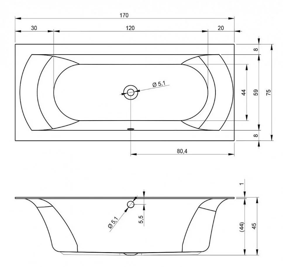 Акриловая ванна RIHO Linares Velvet 170x75 изготовлена из высококачественного листа акрила матового белого цвета, полностью армирована.