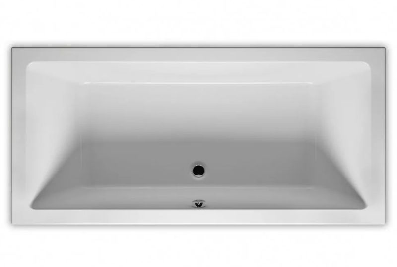 Прямоугольная? ванна RIHO Lugo 190x90 L Plug & Play, из глянцевого белого акрила с прямыми симметричными спинками, гладкой внутренней формой и центральным сливом, представляет собой полностью собранную на заводе конструкцию.