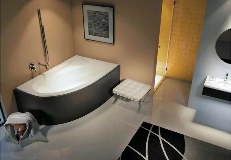 Широкое плоское дно, большое внутреннее пространство, разный наклон спинки - удобно и сидеть, и лежать. В углу ванны расположено сиденье.