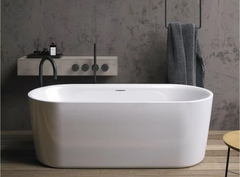 Отдельно стоящая белая глянцевая ванна RIHO Modesty 170х76 достойна своего названия: ванна сочетает в себе роскошный внешний вид с комфортом и удобством для пользователя, не будучи эксцентричной. Это ванна овальной формы с красивым тонким бортиком.